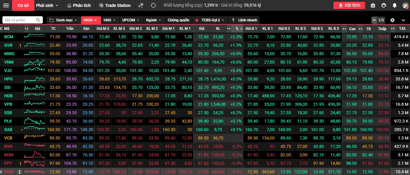 1. Bảng giá TCBS khung 1: Cở sở, phái sinh, phần tích…