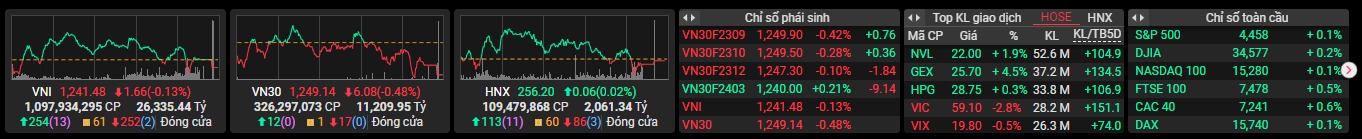 + Chỉ số toàn cầu: thống kê biến động của các sàn lớn trên toàn cầu như S&P500, NASDAQ 100, Dowjone…