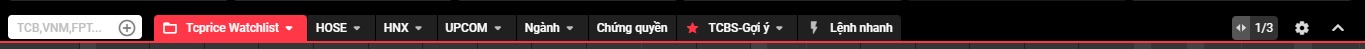 3. Bảng giá TCBS ở khung 3: nhập mã cổ phiếu, Tcprice Watchlist , HOSE…