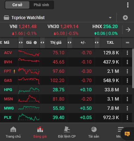 Cách đọc bảng giá chứng khoán TCBS trên điện thoại