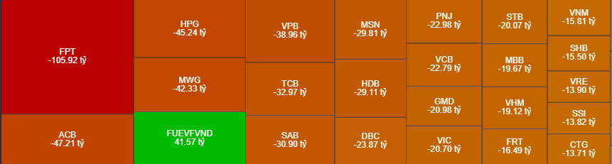 + Bán ròng tập trung: FPT, ACB, HPG, MWG, VPB,…