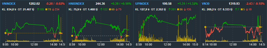 + VN-index Giảm -0.28 điểm xuống 1282.02 điểm